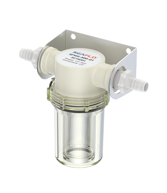 01 series fresh water strainers are especially designed to protect pump from being blocked and worn by effectively intercepting impurities in water. The product features a high strength nylon housing, filter screens in different density, and durable clear sight glass. The 316 stainless steel filter is ideal for fresh water and plastic filter is better for salt water.
