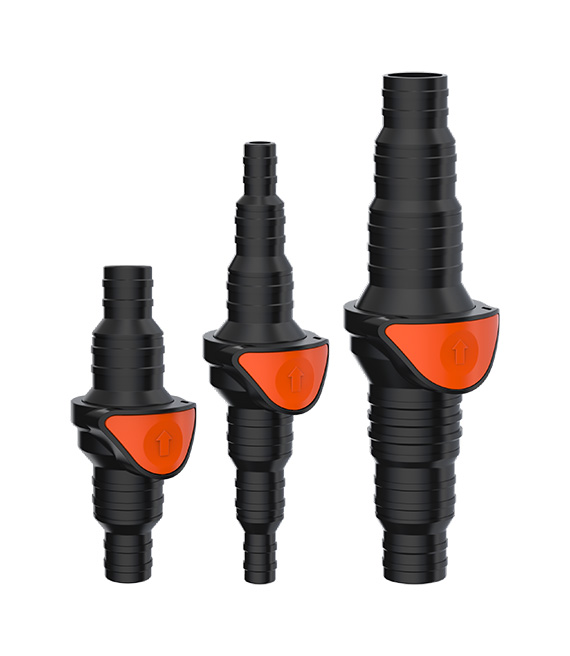 The check valve has a simple structure, can effectively prevent water from flowing back, and is made of high-quality materials with good sealing performance and high reliability. The middle connecting part can be unscrewed and is easy to use. There are two styles: in-line and 90 degrees. Different models make the check valve suitable for various types of water pumps, pipeline systems and other application scenarios, and have a wide range of applications.